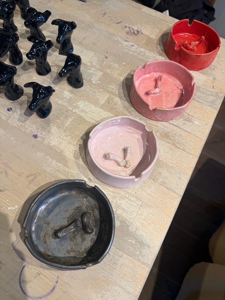 Some behind-the-scenes photos from making the ashtrays, and experimenting with a different clay and other colours below.