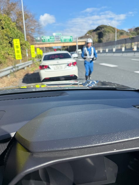 “I’m not sitting in your car,” I told them firmly in Japanese, as they asked me to check their speed camera. Quizzing me on speed rules, I ducked my head in with light relief.