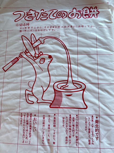 The final moment came a couple of days later. Fresh mochi, still warm from a local maker, arrived. We cut it up with scissors to freeze, grilling a few pieces before our trip to Yamanakako, one of the Fuji Five Lakes.